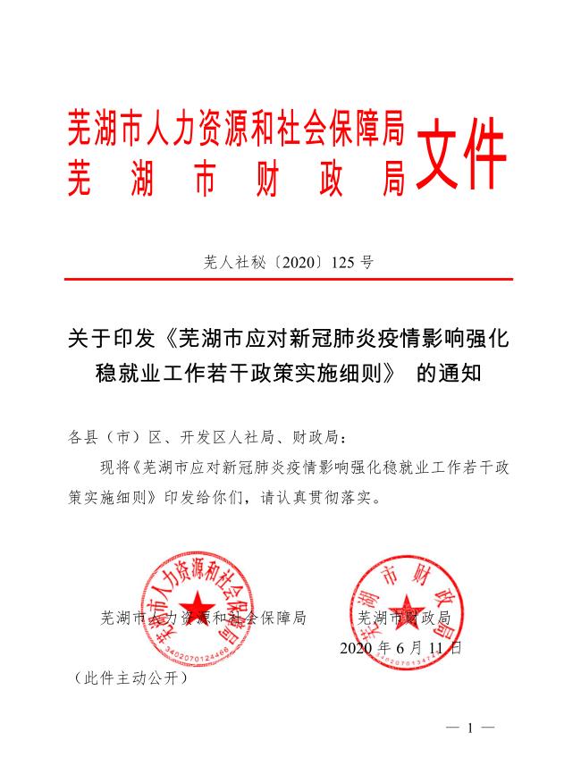 關(guān)于印發(fā)《蕪湖市應(yīng)對新冠肺炎疫情影響強(qiáng)化 穩(wěn)就業(yè)工作若干政策實施細(xì)則》的通知