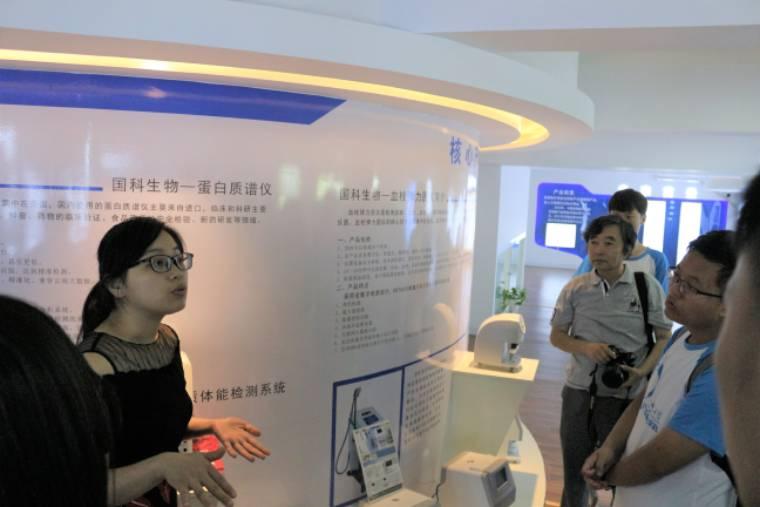 圖為安徽國(guó)科生物科技有限公司負(fù)責(zé)人向團(tuán)隊(duì)成員及指導(dǎo)老師介紹公司先進(jìn)的科技產(chǎn)品和已經(jīng)取得的成績(jī)。通訊員彭文婷攝