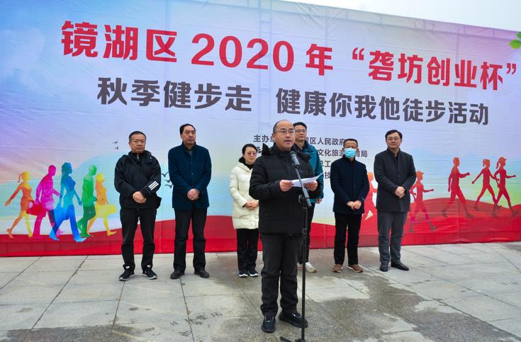 為落實(shí)鏡湖區(qū)2020年"健康鏡湖"全民健身活動(dòng)計(jì)劃,提高全民參與科學(xué)健身的意識(shí),12月3日,由鏡湖區(qū)人民政府主辦,區(qū)文化旅游體育局、區(qū)總工會(huì)承辦,大礱坊科技文化園協(xié)辦的2020年"礱坊創(chuàng)業(yè)杯"秋季健步走、健康你我他徒步活動(dòng)在汀棠公園隆重舉行。區(qū)四大班子領(lǐng)導(dǎo)靳立剛、陳娟娟、王建明、朱光友、章建華,市體育局二級(jí)調(diào)研員江思紅等市、區(qū)領(lǐng)導(dǎo),園區(qū)負(fù)責(zé)人卞國(guó)琛等出席開幕式。